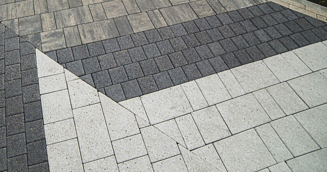 - Размеры тротуарной плитки в узоре мощения Разноразмерная